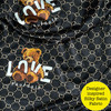Silky Satin Fabric Designer Inspired Gucci "LOVE" Teddy Print Dress 60", BLACK