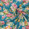 Vintage Rose Print Polycotton Fabric, Turquoise